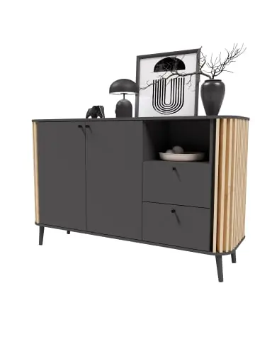 Entdecken Sie unser großzügiges Sideboard in moderner grauer Nachbildung – perfekt für Schlafzimmer, Jugendzimmer oder Gästezimmer. Sie bietet nicht nur reichlich Stauraum für Kleidung und Accessoires, sondern verleiht Ihrem Raum auch eine stilvolle Note. Entscheiden Sie sich für dieses vielseitige Sideboard, um Ihre Wohnräume funktional und ästhetisch zu gestalten.
