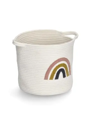 Geflochtener Aufbewahrungskorb RAINBOW – praktischer und stilvoller Korb für Ihr Zuhause Der geflochtene Aufbewahrungskorb RAINBOW in Weiß ist ein vielseitiges und dekoratives Accessoire für Ihr Zuhause.Vielseitig einsetzbar: Mit einem Durchmesser von ca. 32 cm und einer Höhe von 28 cm bietet dieser Korb aus Polyester ausreichend Platz für die Aufbewahrung von Decken, Kissen, Spielzeug oder anderen Gegenständen.Stilvolles Design: Das geflochtene Muster und die weiße Farbe verleihen diesem Korb eine moderne und elegante Optik, die zu jedem Einrichtungsstil passt.Hochwertiges Material: Hergestellt aus strapazierfähigem Polyester, ist dieser Korb langlebig und leicht zu reinigen, sodass er Ihnen lange Freude bereiten wird.Praktische Maße: Mit einem Durchmesser von 32 cm und einer Höhe von 28 cm bietet dieser Korb ausreichend Stauraum, ohne dabei zu viel Platz einzunehmen.Dieses Produkt darf sicher und in der vom Hersteller vorgesehenen Weise verwendet werden und ausschließlich gemäß den Anweisungen, Empfehlungen, Warnungen oder Sicherheitsinformationen, die auf dem Produkt oder seiner Verpackung angebracht oder beigefügt sind.