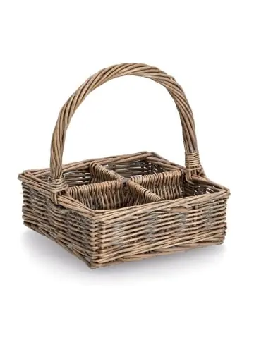 Geflochtener Korb mit Fächern – praktische Aufbewahrungslösung in Braun Geflochtener Korb mit Fächern – praktische Aufbewahrungslösung: Dieser Korb ist die ideale Lösung, um Ihr Zuhause ordentlich und stilvoll zu halten. Mit seinen Fächern bietet er ausreichend Platz für kleine Gegenstände, die Sie griffbereit haben möchten.Abmessungen: Der Korb misst ca. 21 x 21 x 23 cm und passt perfekt in Regale, Schränke oder auf Kommoden. Er ist groß genug, um verschiedene Dinge zu verstauen, aber dennoch kompakt genug, um überall platziert zu werden.Natürliches Design: Hergestellt aus hochwertigen Weidenruten in Braun, fügt sich dieser Korb nahtlos in jedes Interieur ein und verleiht ihm einen rustikalen Charme.Robust und langlebig: Die Verarbeitung aus Weidenruten garantiert eine hohe Stabilität und Langlebigkeit des Korbes. Sie können sicher sein, dass er Ihnen lange Zeit gute Dienste leisten wird.Vielseitige Verwendung: Ob im Wohnzimmer, Schlafzimmer, Bad oder Flur – dieser Korb ist vielseitig einsetzbar und hilft Ihnen dabei, Ordnung zu halten und gleichzeitig einen dekorativen Akzent zu setzen.Dieses Produkt darf sicher und in der vom Hersteller vorgesehenen Weise verwendet werden und ausschließlich gemäß den Anweisungen, Empfehlungen, Warnungen oder Sicherheitsinformationen, die auf dem Produkt oder seiner Verpackung angebracht oder beigefügt sind.