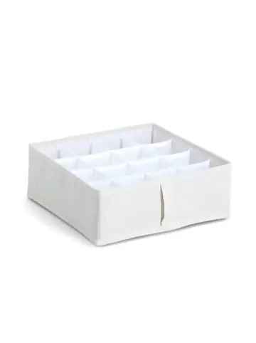 Organizer für Unterwäsche mit 16 Fächern für die Schublade – praktische Lösung zur Ordnung der Unterwäsche in jeder SchubladePraktische Lösung: Der Unterwäsche-Organizer NOMAD mit 16 Fächern ist die ideale Möglichkeit, Ihre Unterwäsche zu ordnen. Mit den Abmessungen 30 x 30 x 11 cm passt er in die meisten Schubladen und sorgt für einen einfachen Zugriff auf alle Teile. Hohe Materialqualität: Der Organizer besteht aus strapazierfähigem Kunststoff, ist stoßfest und leicht zu reinigen. Die Möglichkeit, das Material zu waschen, sorgt dafür, dass er immer wie neu aussieht. Intelligente Organisation: 16 Fächer ermöglichen eine effiziente Sortierung der Unterwäsche, was die tägliche Nutzung erleichtert. So finden Sie schnell, was Sie brauchen, ohne unnötig in der Schublade suchen zu müssen. Ästhetisches Design: Die subtile beige Farbe sorgt dafür, dass der Organizer perfekt in verschiedene Inneneinrichtungen passt. Sein neutraler Look verleiht jedem Raum Eleganz. Benutzerfreundlichkeit: Der Organizer mit Reißverschluss ermöglicht ein schnelles Öffnen und Schließen, was besonders im täglichen Gebrauch nützlich ist. Sie können ihn leicht transportieren und überall aufbewahren.