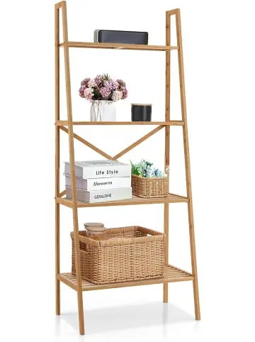 Beschreibung: Dieses 4-stufige Leiterregal aus Bambus ist eine perfekte Aufbewahrungslösung! Dieses Lagerregal ist mit 4 offenen Regalen ausgestattet und bietet Platz für verschiedene Gegenstände, um sie besser zur Schau zu stellen. Darüber hinaus sorgt das ausgewählte Bambusmaterial mit verstärkten Querstreben und rutschfesten Fußpolstern für einen stabilen Stand dieses Bücherregals. Dank der Kippschutzvorrichtung eignet sich dieser Aufbewahrungsorganisator auch für Familien mit Kindern und Haustieren. Egal, ob Sie es als Lagerregal oder Pflanzenständer verwenden möchten, dieses Holzregal sorgt für Flexibilität.Eigenschaften: 4 Regale mit unterschiedlichen Breiten für unterschiedliche Aufbewahrungsbedürfnisse Sorgt dank seines 100 % natürlichen Bambusmaterials für eine längere Lebensdauer Gratfreie Oberfläche für eine angenehme Haptik und einfache Reinigung Machen Sie eine rustikale Ergänzung für Ihr Wohnzimmer, Ihren Balkon oder Ihr Büro Verstärkte Querstangen und rutschfeste Fußpolster für starke Stabilität Kippschutz für sicheren Schutz Verwenden Sie es je nach Bedarf als Bücherregal, Lagerregal oder Pflanzenständer Einfache Installation erforderlich Material: Bambus Gesamtmaße: 60 x 35,5 x 148 cm (L x B x H) Nettogewicht: 4 kg Tragfähigkeit des ersten Regals: 10 kg Tragfähigkeit des zweiten Regals: 15 kg Tragfähigkeit des dritten Regals: 20 kg Tragfähigkeit des unteren Regals: 20 kgLieferungsumfang: 1 x Bücherregal 1 x Anleitung