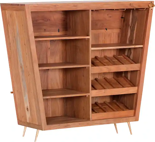 Fußstange aus goldfarbenen lackiertem Metall. Wiener Geflecht aus Rattan. 15 Flaschenhalter. 3 Gläserhalter. Inklusive Bodenschoner